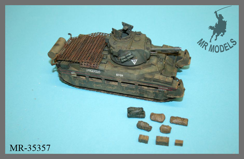 Detailliertes Zurüst-Set zur Nachbildung eines australischen Matilda II Infanteriepanzers aus dem Zweiten Weltkrieg. Dieses Set von MR Modellbau wurde speziell für den neuen Tamiya-Bausatz (Art.-Nr. 35300) entwickelt und enthält vollständig neu gestaltete Bauteile (außer dem enthaltenen Gepäckzubehör), inklusive CNC-gefräster Geschützrohre für die Hauptwaffe und das BESA-Maschinengewehr.