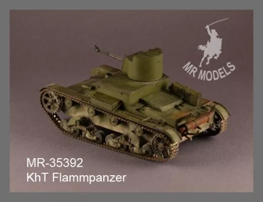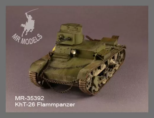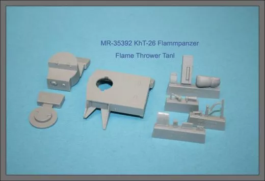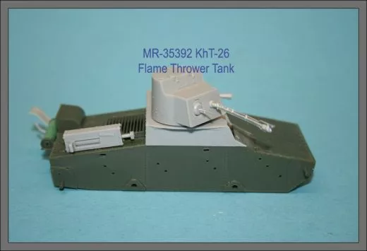 Der KhT-26 Flammpanzer war eine spezielle Flammenwerfer-Variante des sowjetischen T-26 Leichtpanzers aus dem Zweiten Weltkrieg. Mit diesem detailreichen Resin-Umbausatz von MR Modellbau lässt sich der Hobby Boss T-26 Bausatz originalgetreu in die KhT-26 Version umbauen.