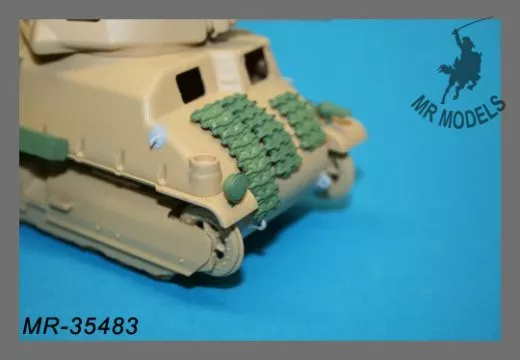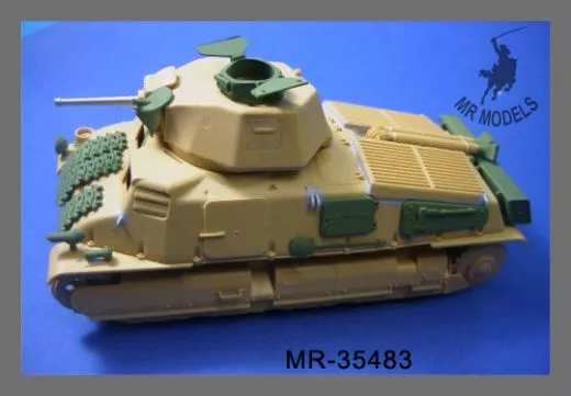 Der MR-35483 Umbausatz bietet eine präzise Möglichkeit, den französischen Somua 35 S 739 (f) als deutschen Beutepanzer der Wehrmacht darzustellen. Hergestellt aus hochwertigem Resin, ermöglicht dieses Zubehör von MR Modellbau eine exakte Modellumsetzung des Somua S 35 im Maßstab 1:35 auf Grundlage des Tamiya Kits No.35344.