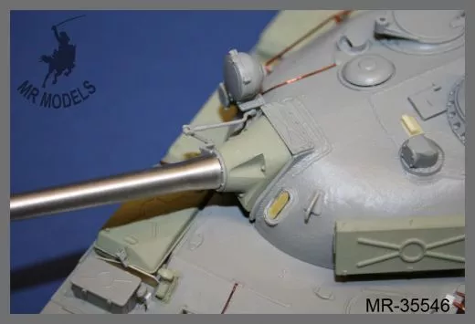 Bringen Sie mehr Realismus in Ihre Modelle des T-54 oder T-55 Panzers von TAKOM: Dieses professionelle Umbauset von MR Modellbau beinhaltet ein präzise CNC-gefrästes 100 mm D-10T/TG Geschützrohr aus Aluminium, ergänzt durch einen passenden Rauchabsauger aus Resin sowie eine fein detaillierte Geschützblende.