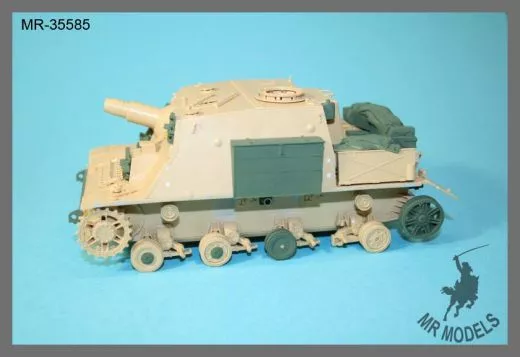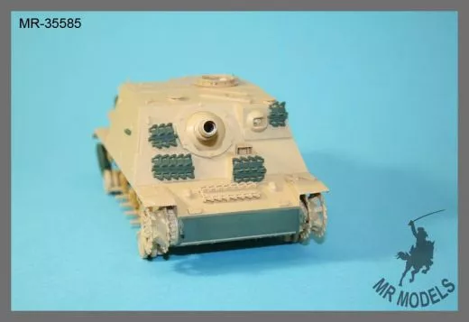 Verleihen Sie Ihrem Modell des Sturmpanzers 43 Brummbär von Tamiya (Bausatz Nr. 35353) mehr Authentizität mit diesem detaillierten Resin-Umbausatz von MR Modellbau. Der Umbausatz MR-35585 umfasst verschiedene Bauteile, die eine präzise Nachbildung der späten Brummbär-Variante ermöglichen, die auf dem Panzer IV Ausf. J Fahrgestell basiert.