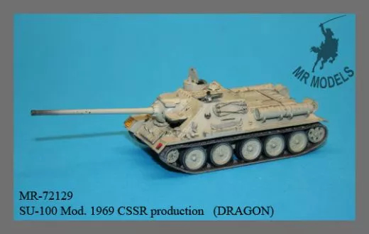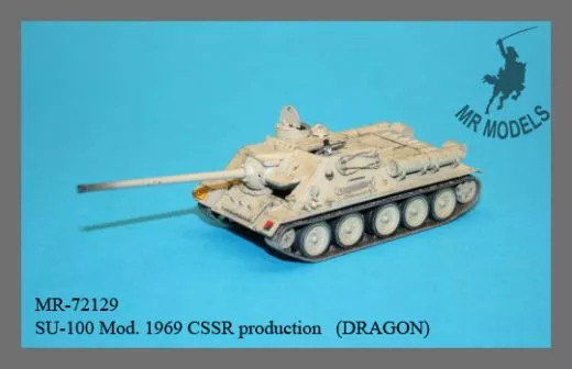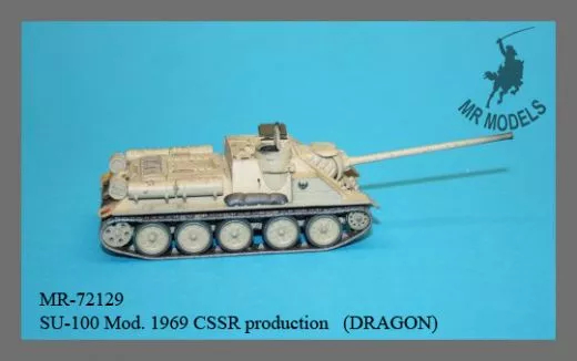 Produktinformationen "MR-72129 SU-100 Mod. 1969 CSSR Produktion mit Scheibenbenrädern u. gedrehtem Rohr"